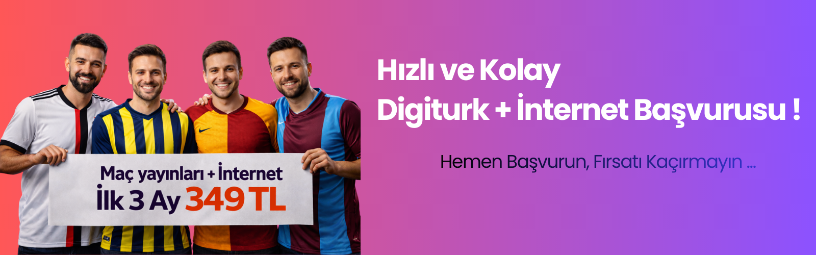 Evine internet bağlatmak isteyen, Digiturk yayınlarını takip etmek isteyen ve maç yayınlarını kaçırmak istemeyen kullanıcılar için hazırlanan güven veren başvuru sayfası.